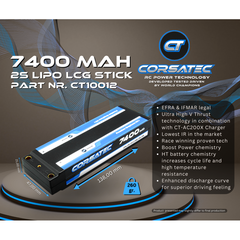Corsatec Graphene HV+ Lipo 2s stick 7400mah - CORSATEC - CT10012